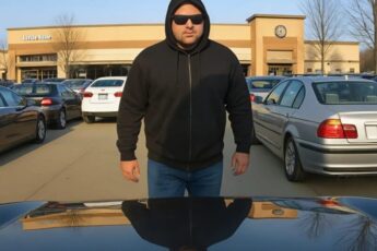 Я заметила вмятины на машине, и пересмотрев запись, увидела, как мужчина в черной одежде бьет кулаками