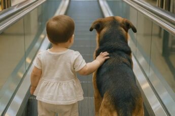 Маленькая девочка и собака в торговом центре без присмотра взрослых спускались по эскалатору: я решил