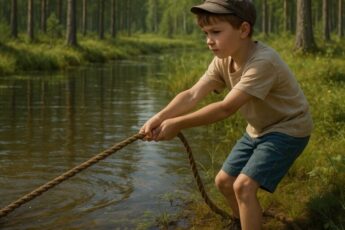Шестилетний мальчик увидел мокрую веревку возле реки: мальчик потянул за веревку и через несколько минут
