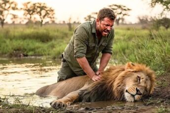 Мужчина спас из реки льва, который чуть не утонул, но когда они оказались на суще, лев сделал кое-что