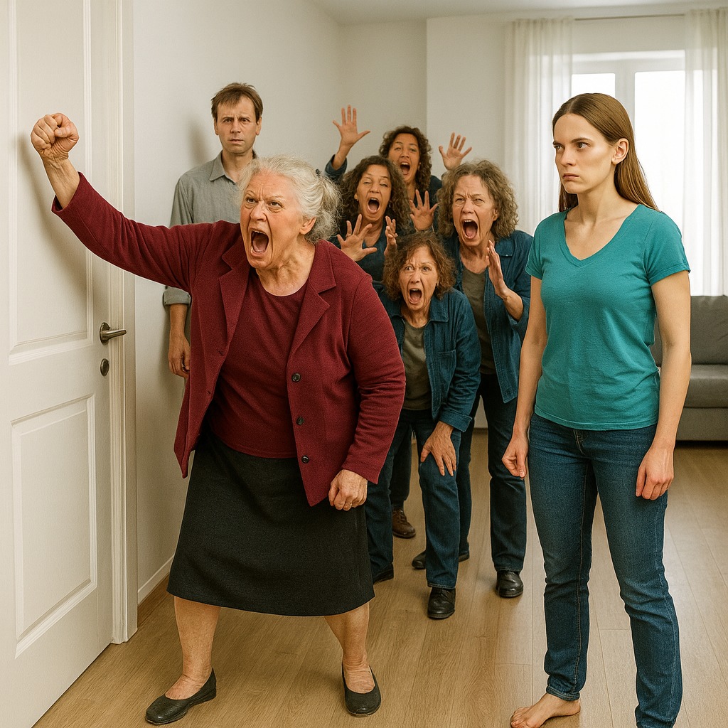 Таня открыла дверь. На пороге стояла вся толпа – свекровь, Нюра, две тётки, которых она даже не знала, и Валера, побледневший и растерянный. Катька протиснулась вперёд, адвокат встала рядом.
