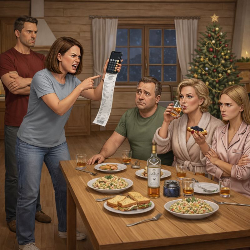 — Молчать! — рявкнула я так, что он икнул. — Дальше. Икра черная, 2 банки. 8 000 рублей. Кто ел? Я видела, как Лена делала бутерброды. Тетя Света ела. Дядя Боря. Мы с Олегом — ни икринки. Записываем на вас.