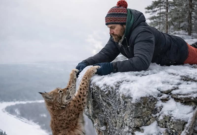 Лесник увидел рысь, висящую на огромной скале, и спас её: но то, что произошло потом, повергло мужчину в настоящий шок 😨😱