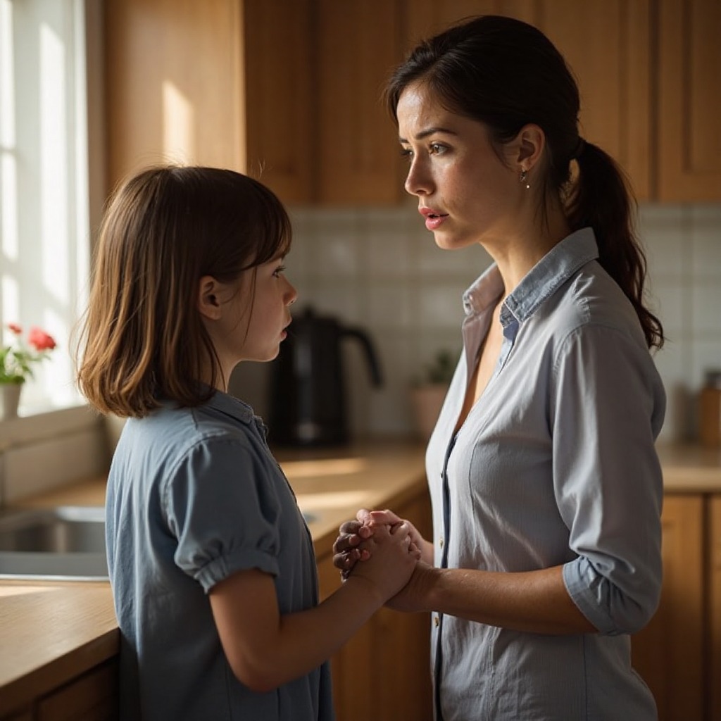 В этот момент в кухню вошла дочка и посмотрела на них снизу вверх. В её глазах читалась хрупкая смелость, не по годам взрослая.