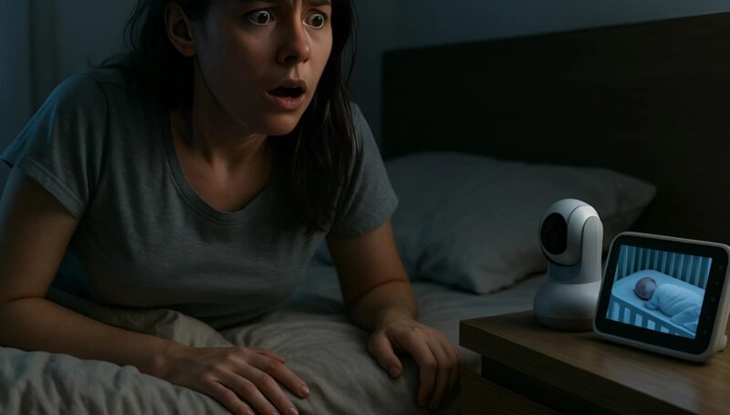 Её дыхание сбилось, ладони похолодели. В доме кроме неё и ребёнка никого быть не должно. Двери были заперты, окна закрыты. Но на экране — бесспорная картина: кто-то или что-то стояло рядом с её малышом.