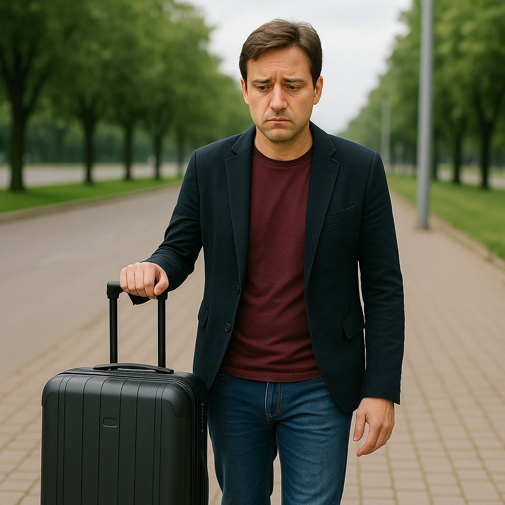Он ехал в автобусе до родного города, прижимая к себе потрёпанный чемодан.