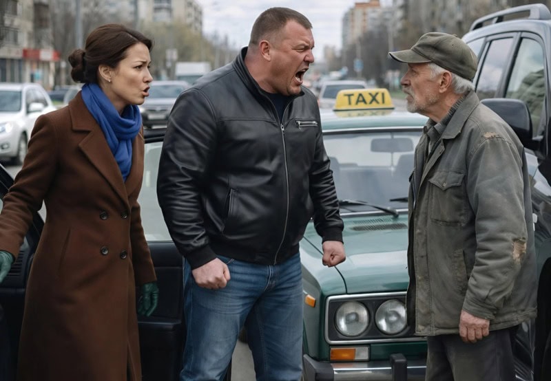 Это был крупный мужчина в кожаной куртке с бритой головой. Он подошёл к дедушке, который только успел выйти из своей машины, и начал орать так, что его слышала вся дорога.