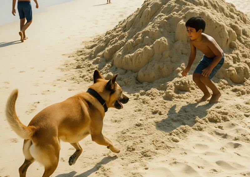 Сначала это показалось игрой. Она стала рычать и лаять, кружась вокруг песчаной насыпи, а затем начала судорожно копать. Песок летел во все стороны, пёс зарывался всё глубже, не отвлекаясь ни на крики хозяина, ни на людей, которые начали оборачиваться.