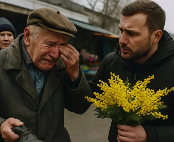 Продавщица посмотрела на деньги, усмехнулась и вытащила из корзины почти засохшую ветку мимозы — сломленную, выцветшую.