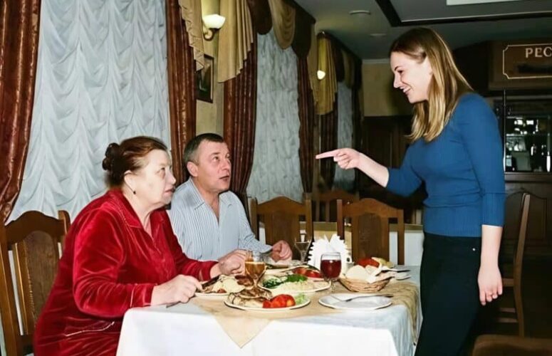 Хозяин ресторана накричал и оскорбил официантку, хотя на самом деле он сам локтем задел стакан и пролил кофе на свою рубашку: но от ответа официантки все в ресторане были в полном шоке