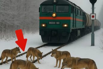 Стая волков неподвижно стояли на рельсах, пытаясь остановить поезд: приглянувшись, машинист заметил, что именно охраняли волки