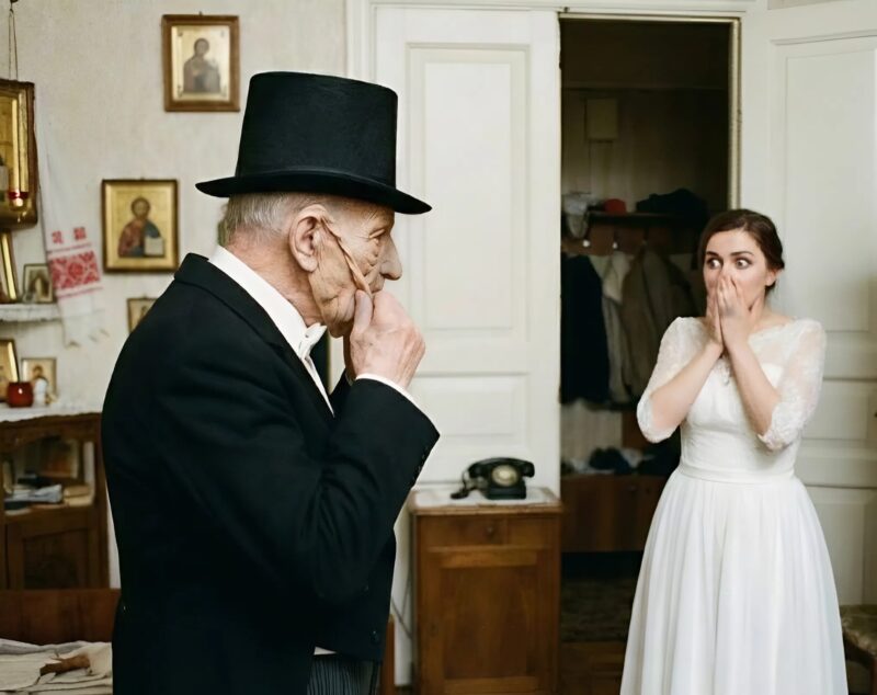 Муж подошёл ближе. Он медленно снял шляпу, затем поднял руку к маске, которую не снимал долгие годы. Девушка замерла, стискивая ладони. Маска с лёгким щелчком отстегнулась — и в следующую секунду девушка закричала от ужаса. Под маской был… Продолжение в первом комментарии