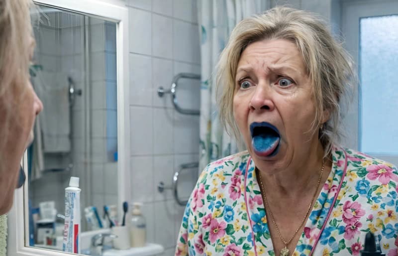 А один из компонентов окрасил язык в ярко-синий цвет. Увидев себя в зеркале, Валентина Ивановна испугалась так, что позвонила мужу, Ивану Петровичу, и потребовала срочно приехать.