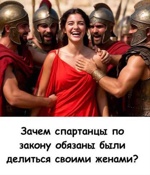 В древней Спарте мужья могли «делиться» женами по правилам, продиктованным общественным устройством и военной логикой. Женщины имели сравнительно высокую степень свободы в обществе, а вся система была ориентирована на рождение и воспитание сильных потомков, необходимых для поддержания военной мощи государства. Это была не безудержная распущенность, а социальный механизм, выстроенный вокруг идеи коллективного блага.