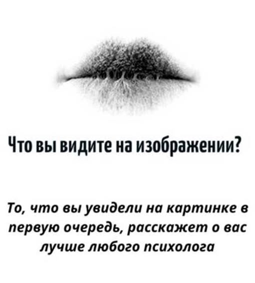 А что видишь ты? Губы, корни или деревья? Один только взгляд на картинку способен многое рассказать о твоей личности. Психологи утверждают, что наше подсознание выбирает то, что ближе внутреннему “я”. Попробуй пройти этот необычный тест и узнай, что скрывается в глубинах твоего характера!