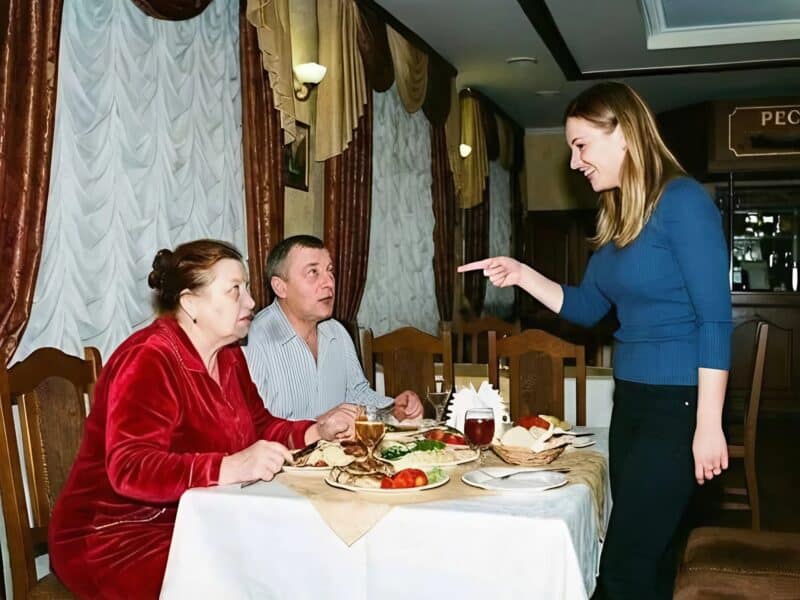 Раздался смех — неловкий, растерянный. Невестка встала медленно, как будто боялась, что ноги подкосятся. Муж дернул её за руку: