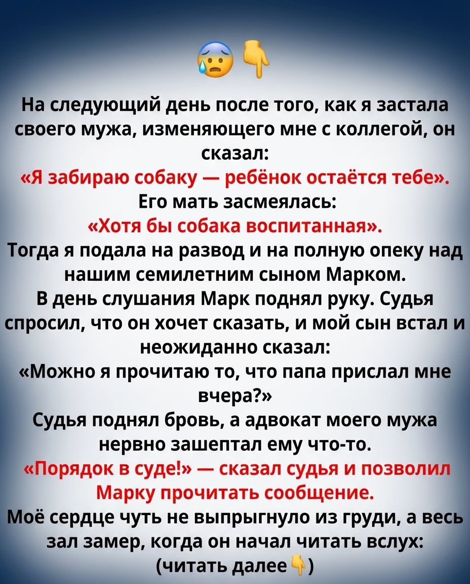 подала на развод после того, как поймала мужа на измене — но слова нашего сына в суде ошеломили всех